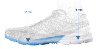 Heel to toe differenctial (drop): The difference in heel stack between the forefoot and the heel. Typically, a minimalist shoe is between 0-8 millimeters (mm). A zero drop (0 mm) means that the heel and forefoot are completely level. In the picture below, the drop would be 6mm.